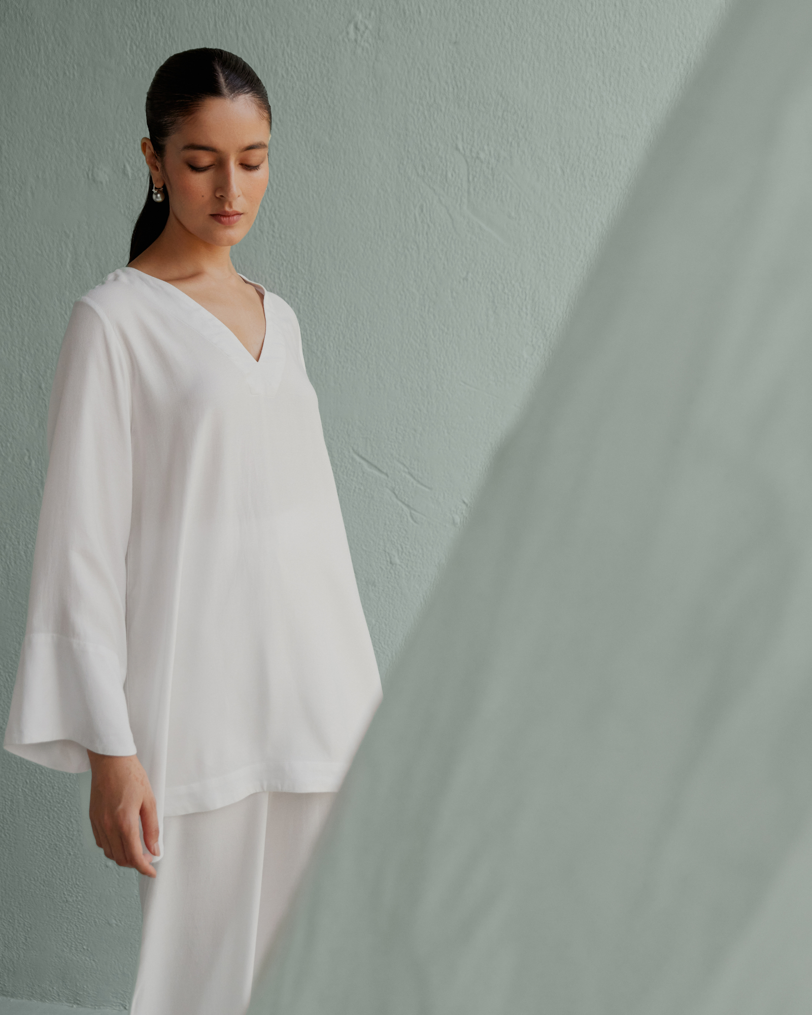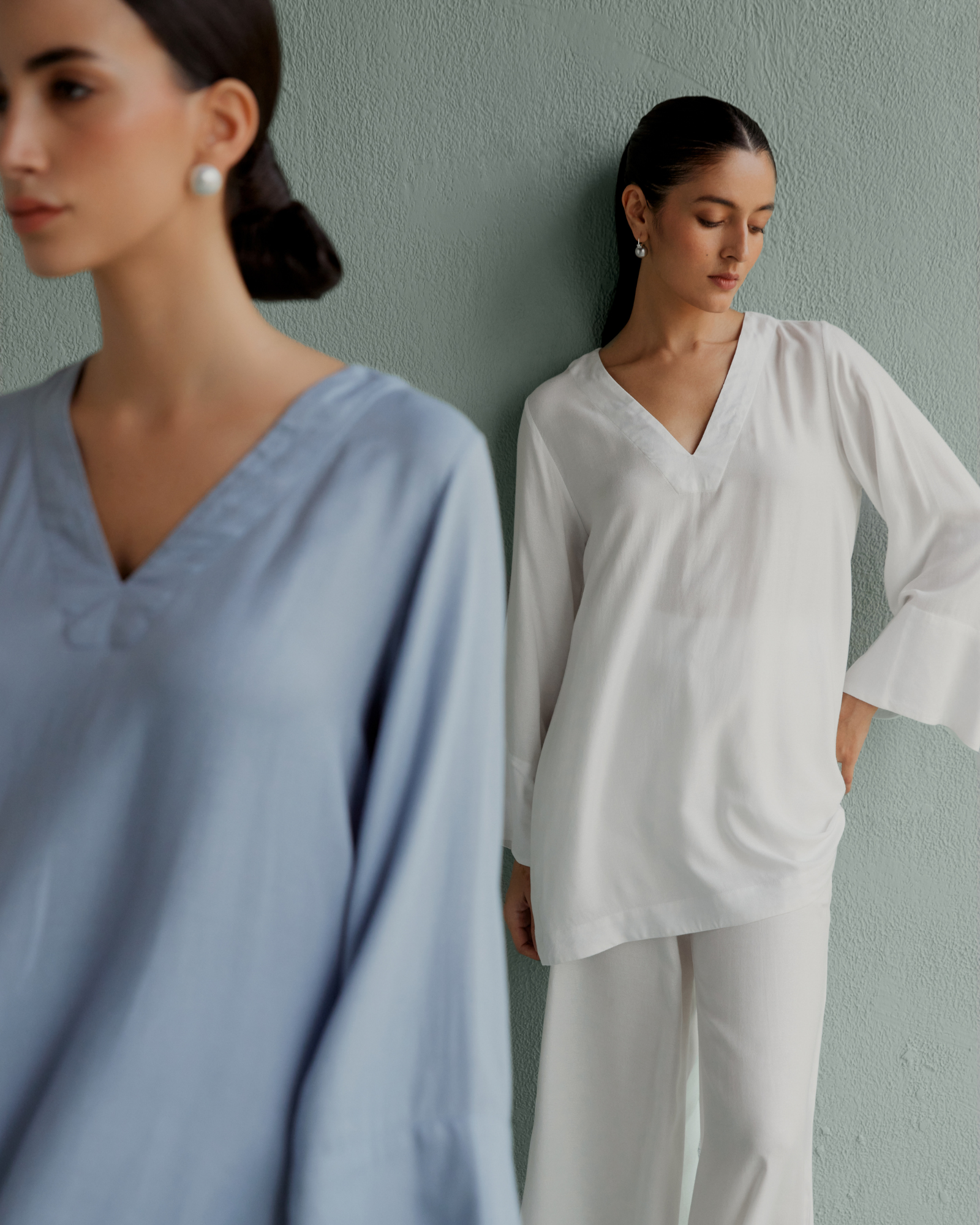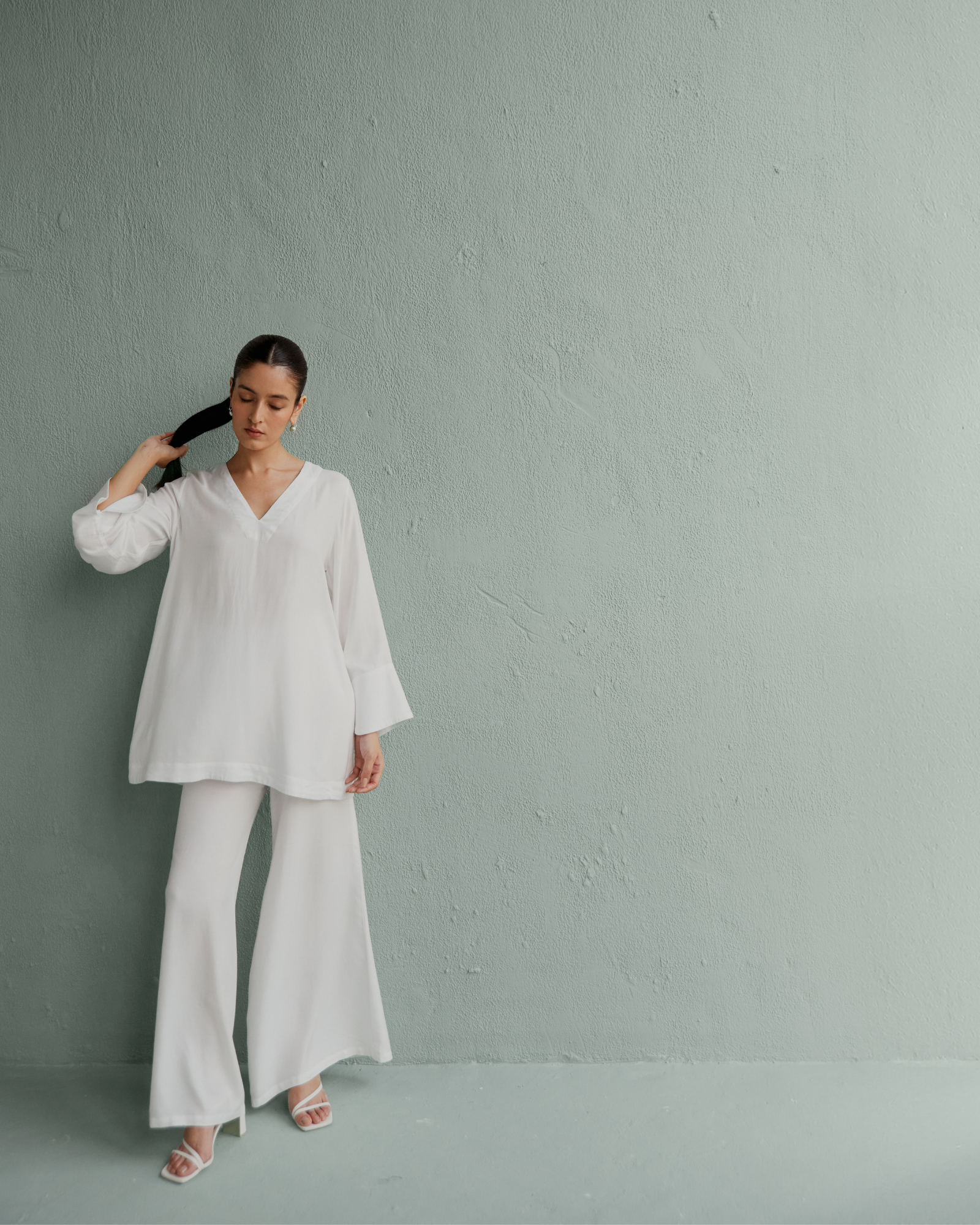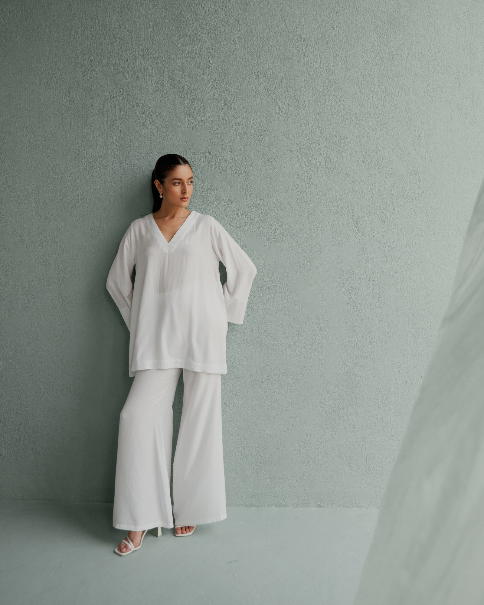 A flowy and versatile set that’s bound to get you obsessed. With a v-neck that falls beautifully, owing to the fabric's natural flow, it is the ultimate ensemble of style and comfort. Whether you're headed to work, a casual outing, or a special event, this set is perfect for an effortless look!