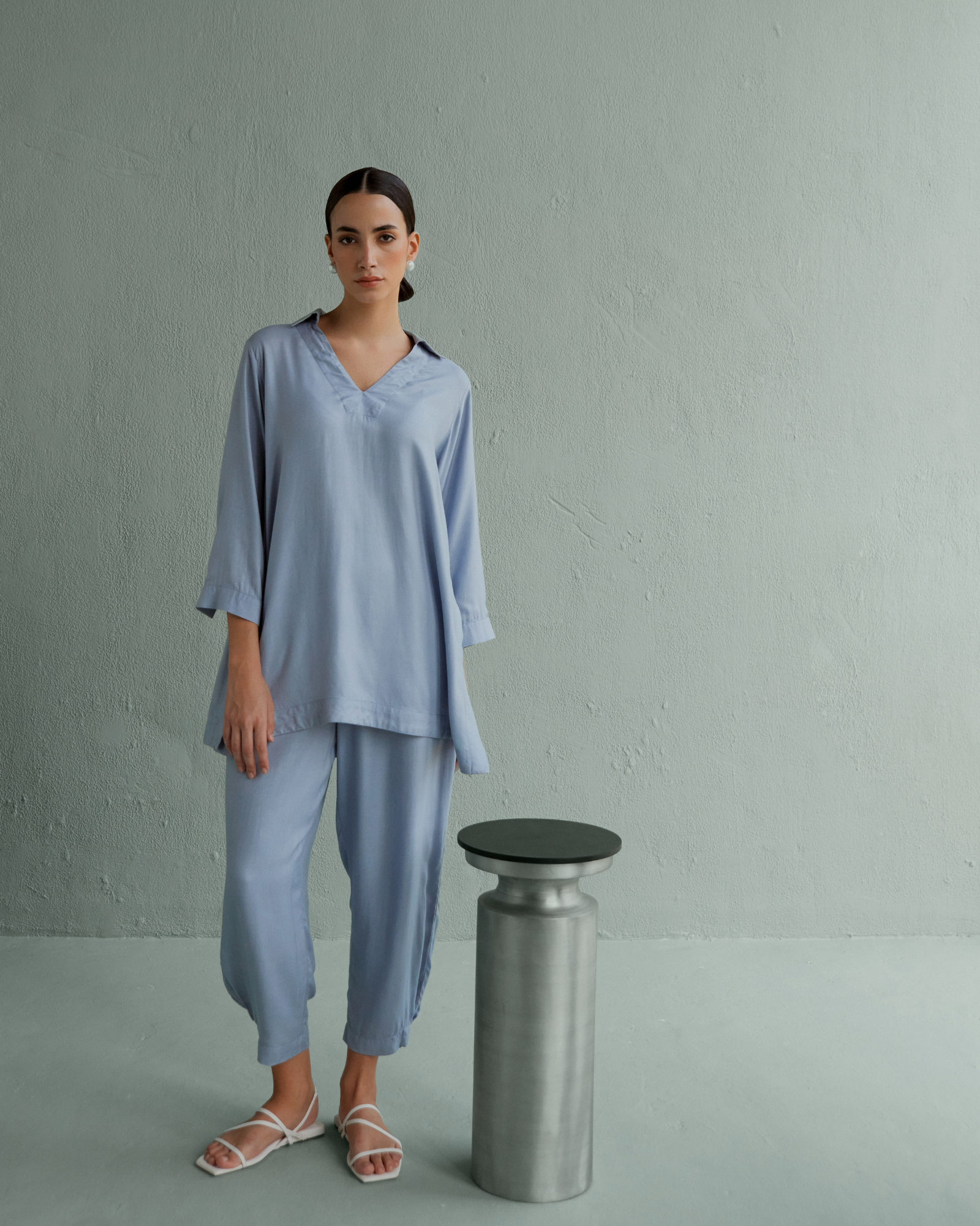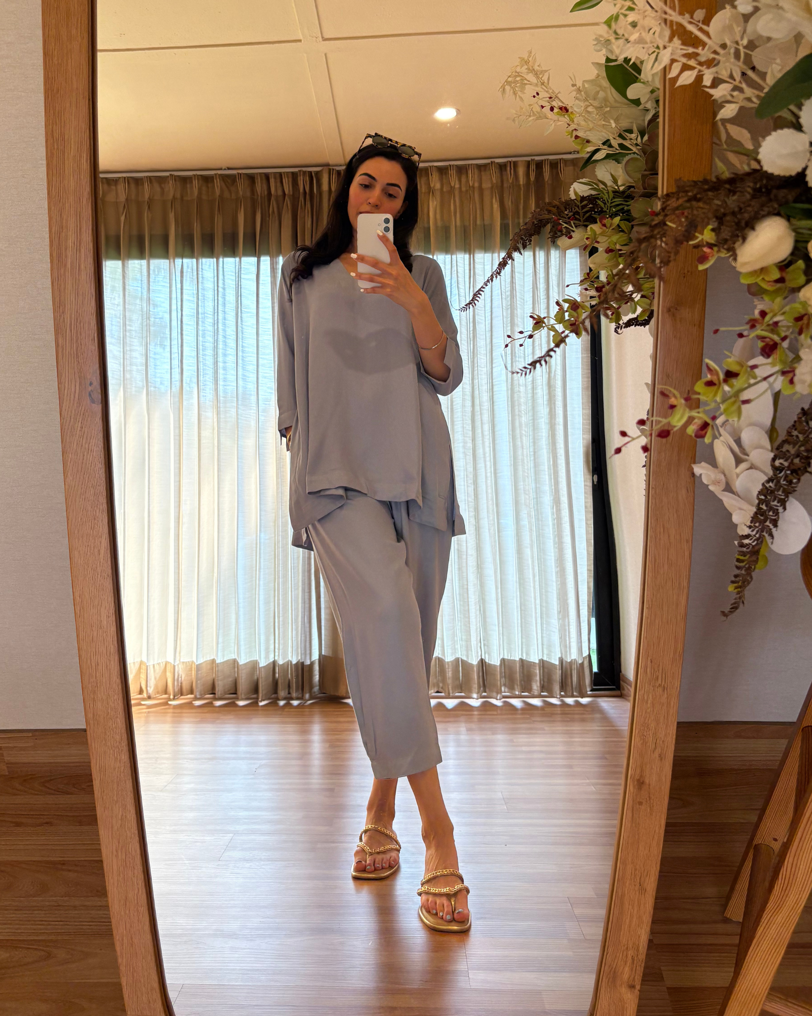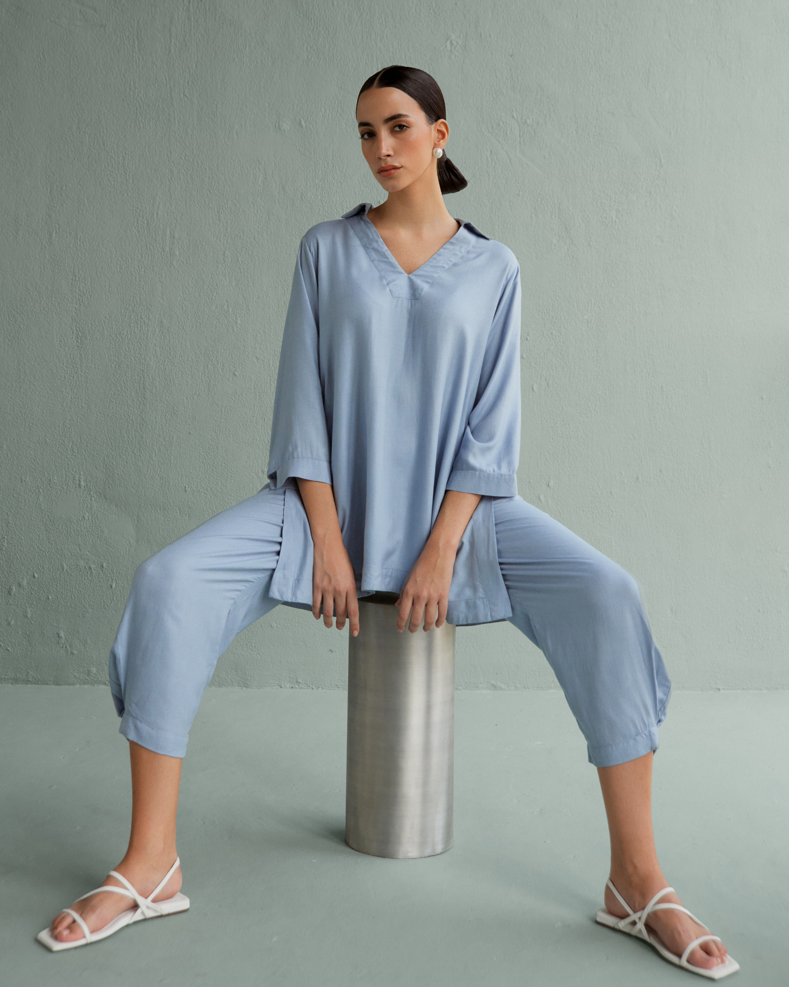 With a relaxed-fit top and a matching pair of puffy bottoms, it makes the perfect set for a laid-back evening or a casual outing!