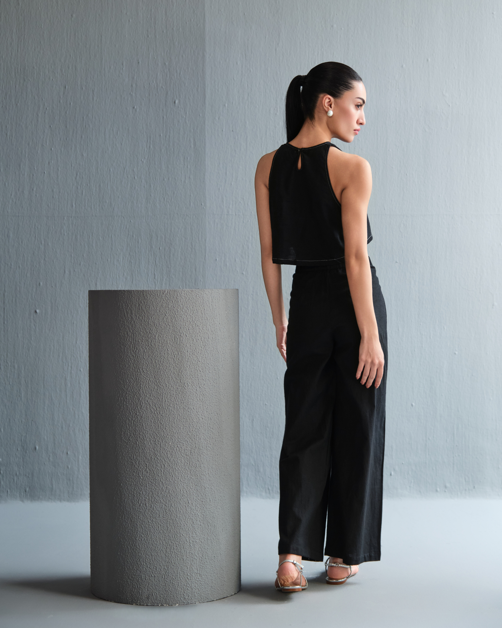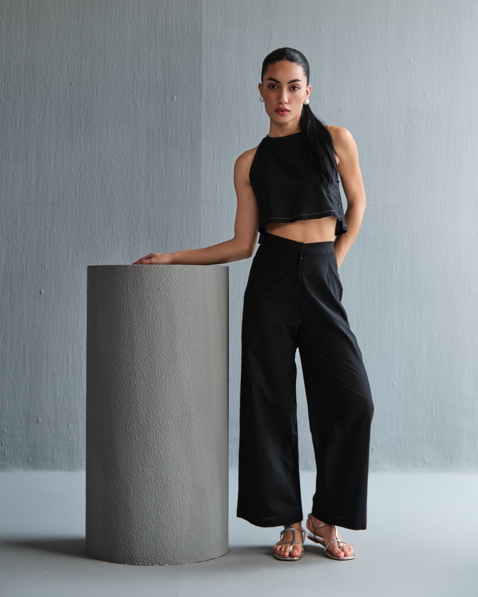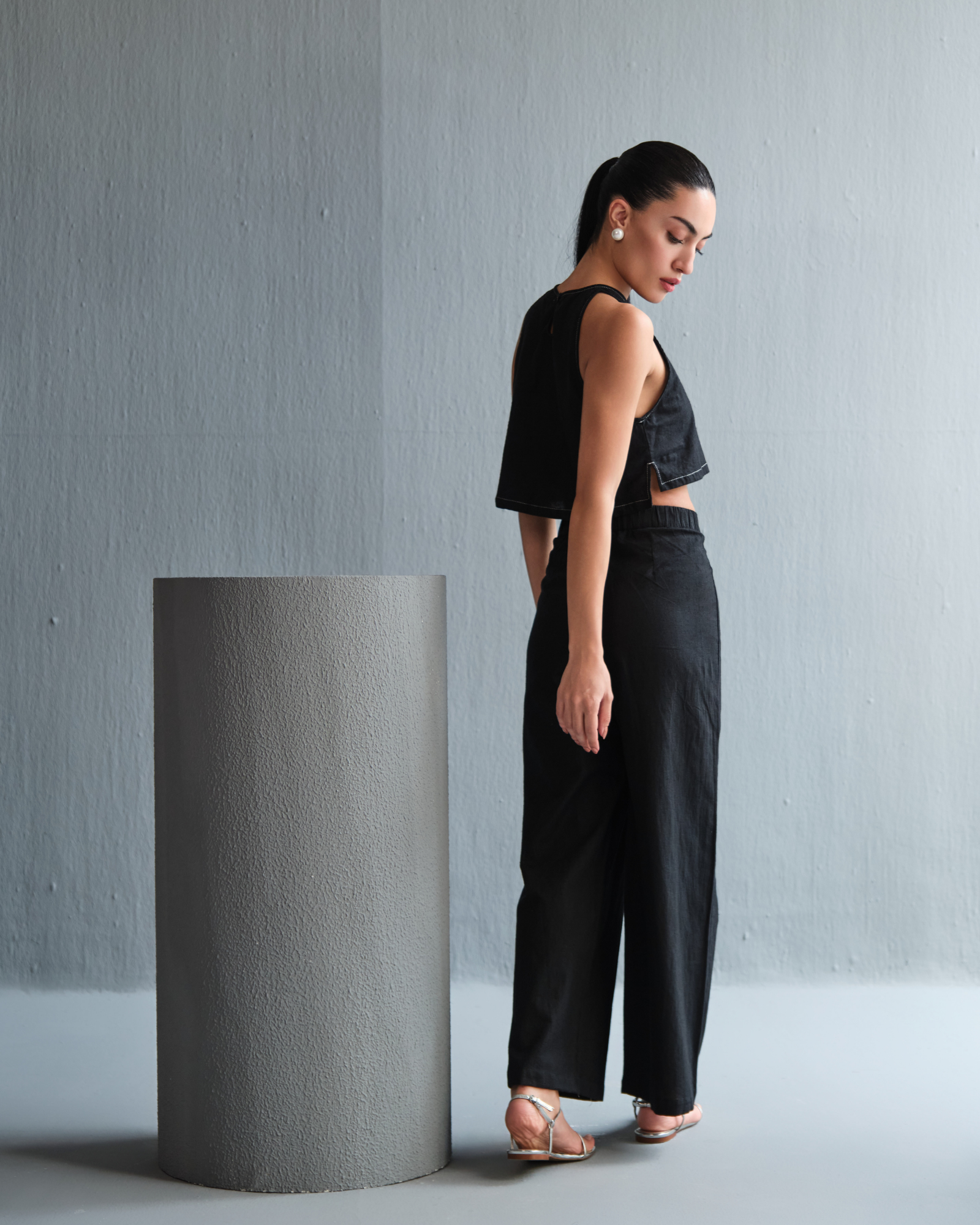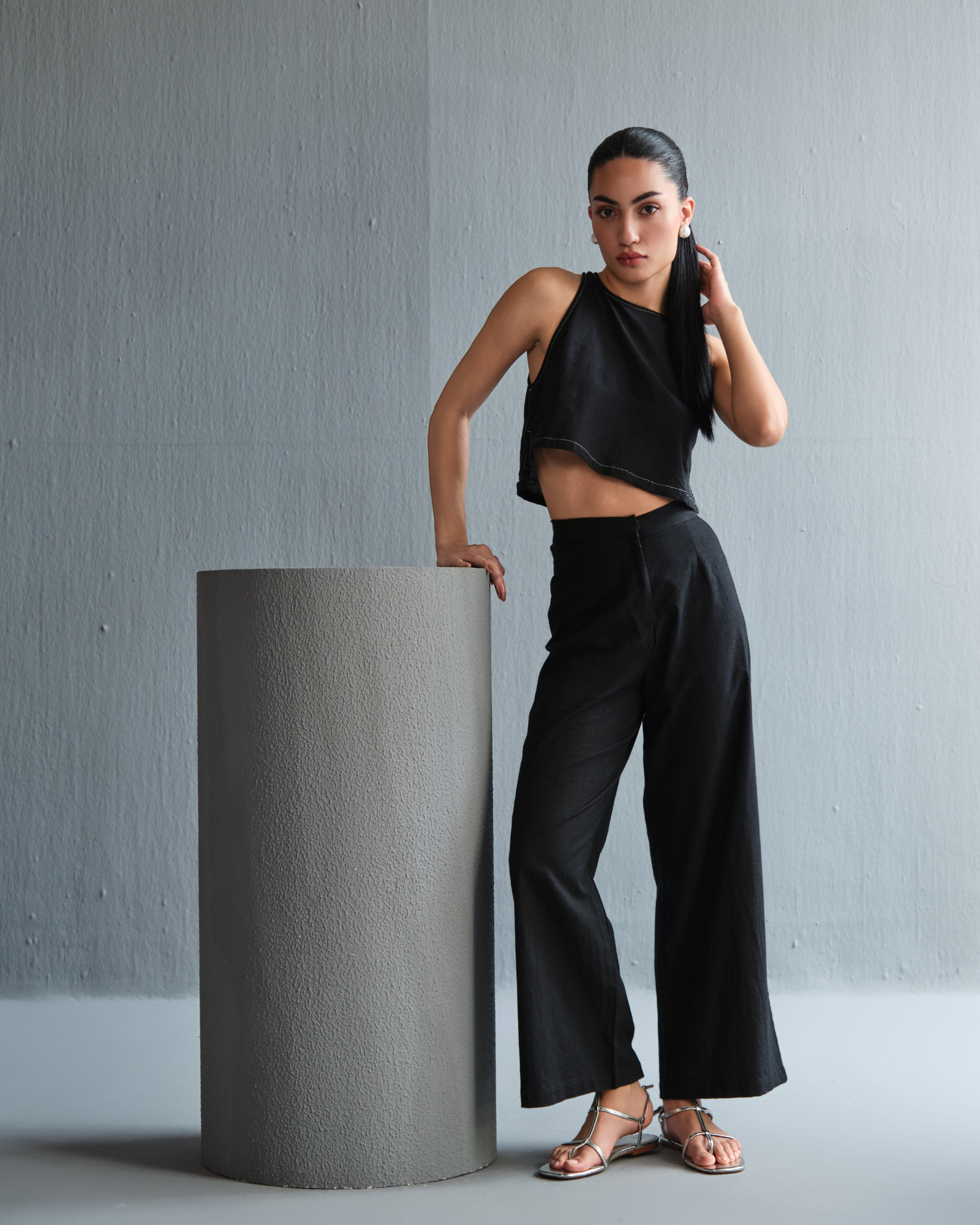 This trendy stunner is sure to turn some heads - a chic crop top and matching bottoms in a soothing, sage green colour. Minimal, light-weight and airy: it’s got all the comfort with no compromise on style.