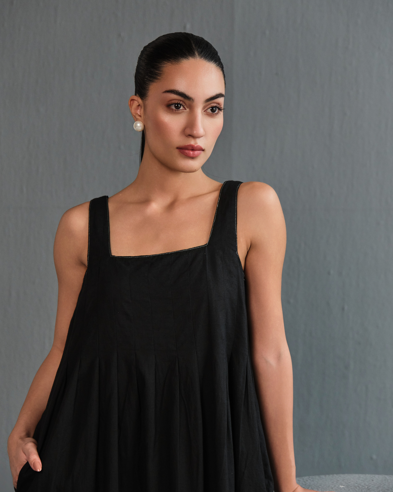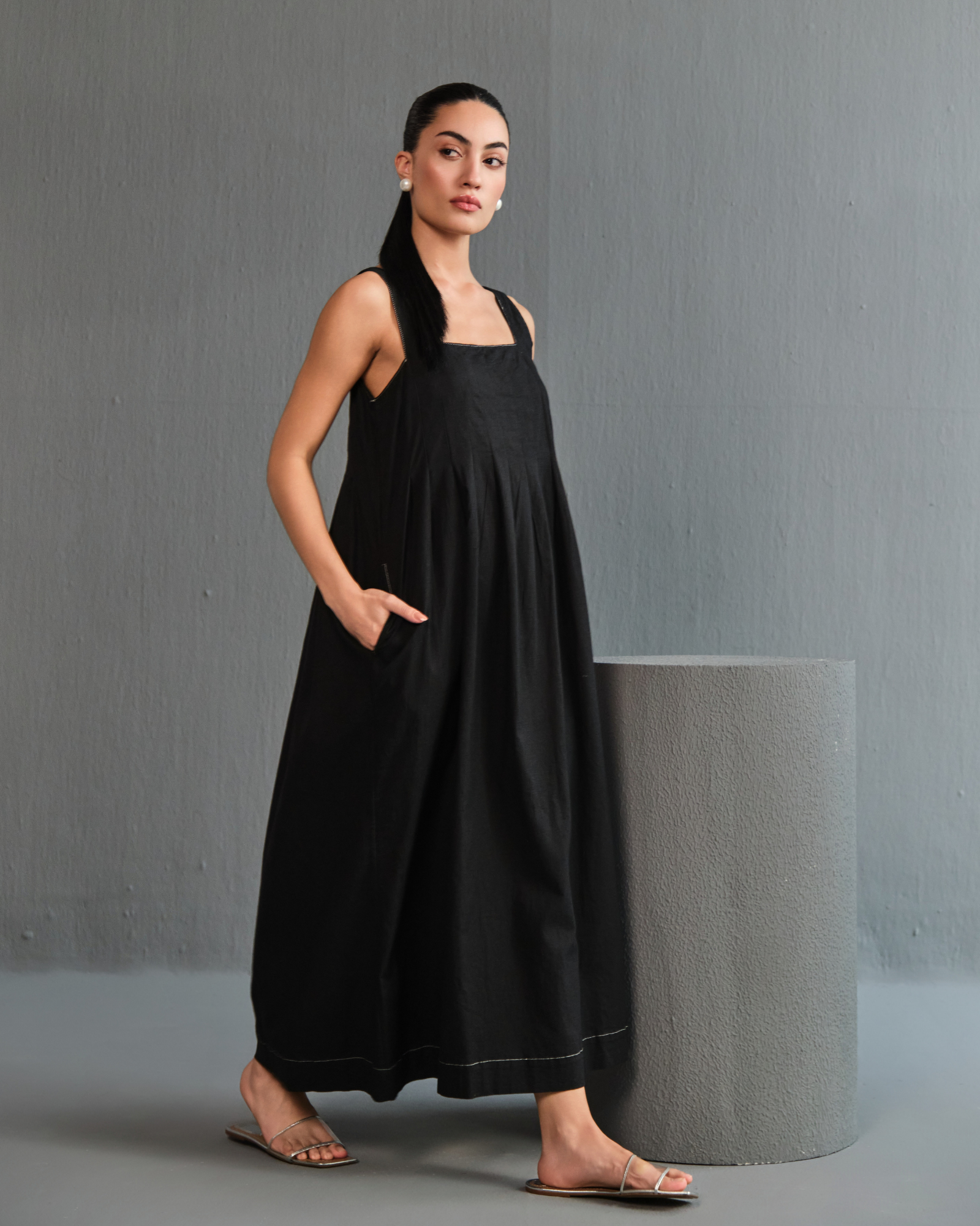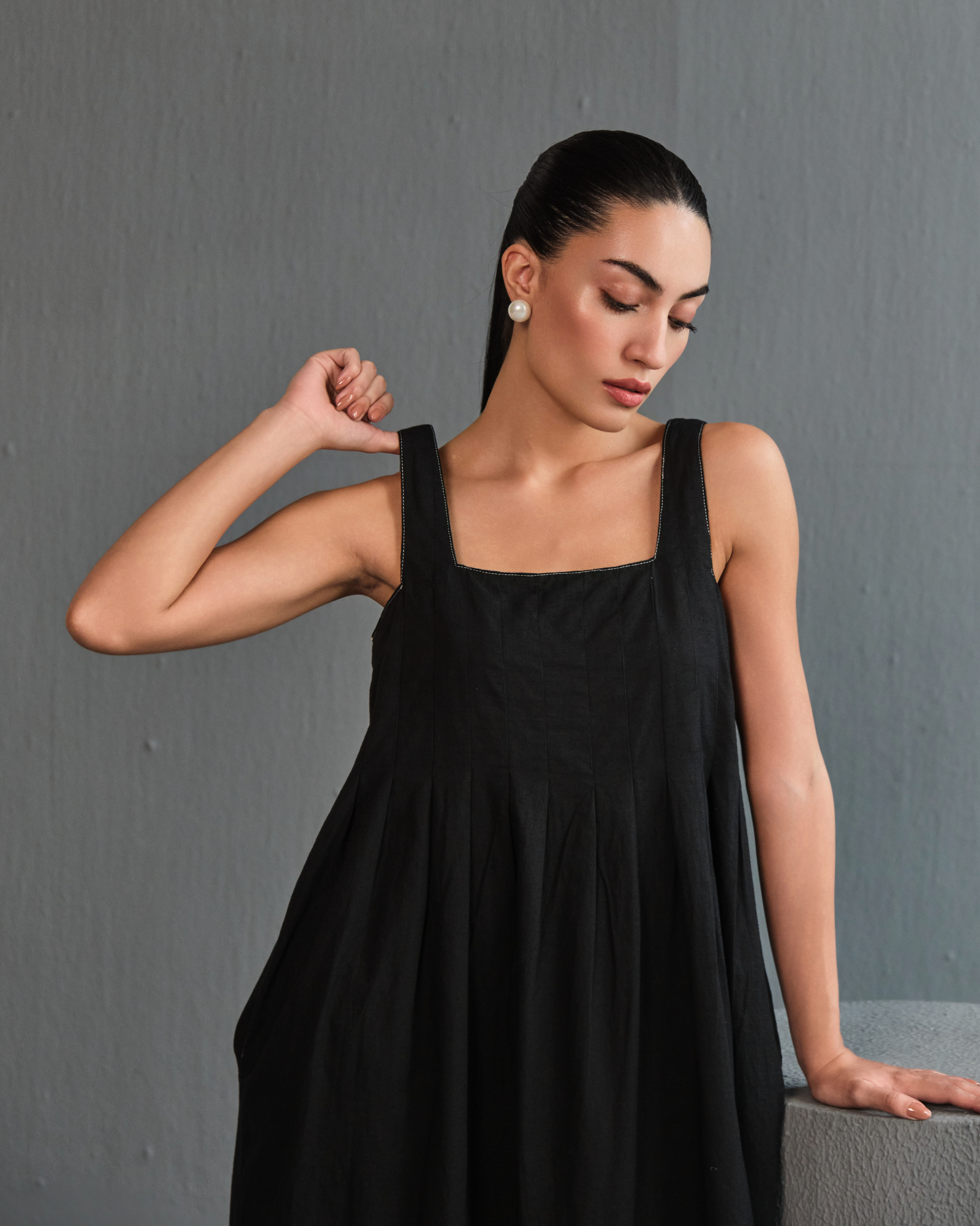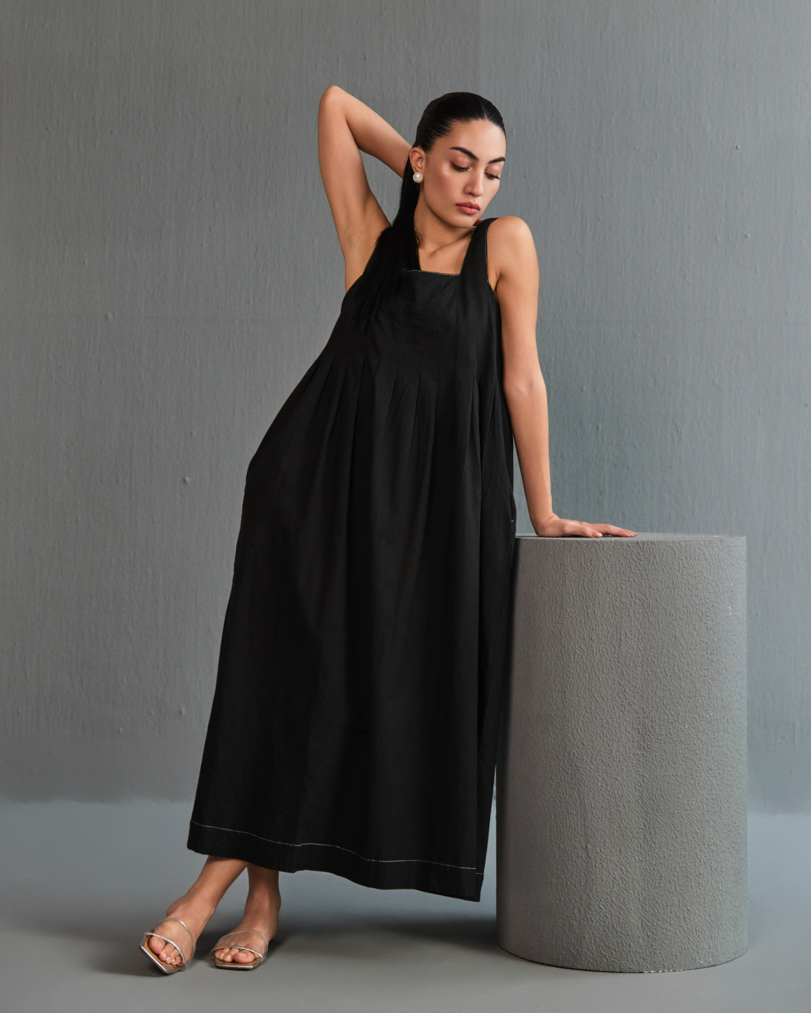 A dress you’ll want to wear everywhere, the Bonito maxi dress. It’s got everything you need - a flowy relaxed fit, a square neckline that sits comfortably, multiple pleats to flatter your curves and handy pockets, of course!