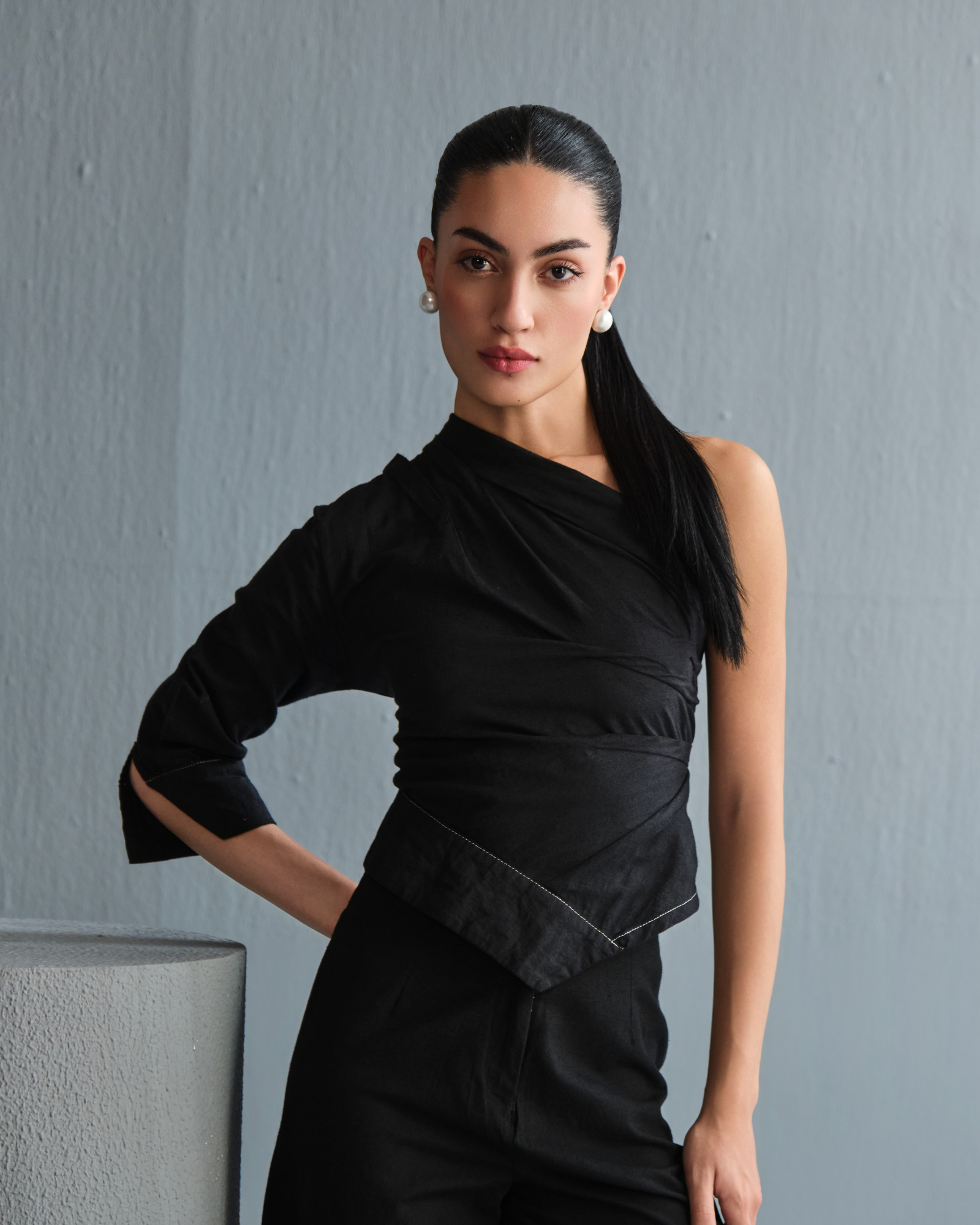 Ditch the basics and upgrade your wardrobe - this playful, off-shoulder top has an asymmetric silhouette to fit your natural shape perfectly.